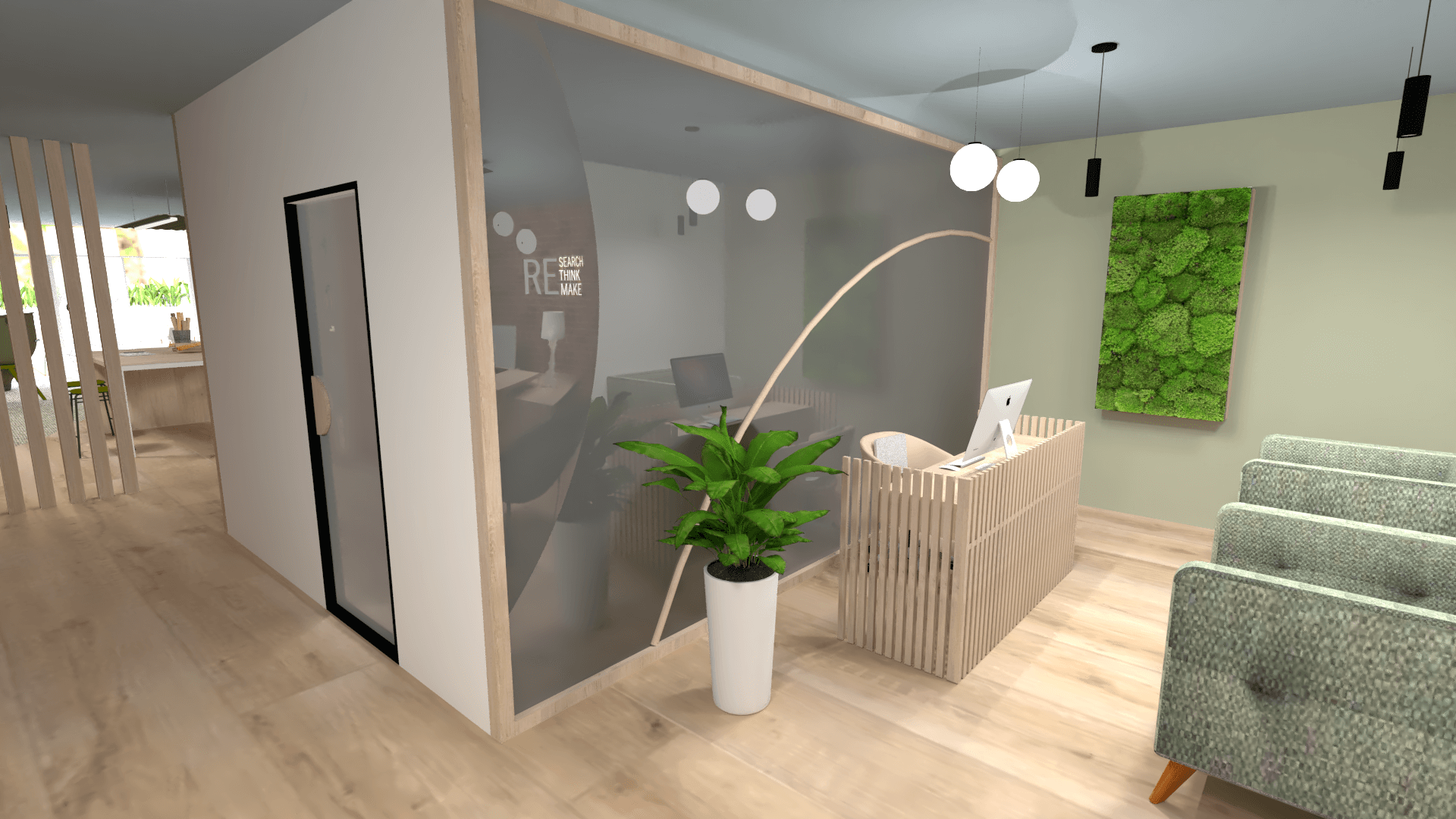 Des indications murales dans le couloir principal permettront d’indiquer aux visiteurs où se trouvent la salle de réunion ainsi que l’espace cuisine/détente.