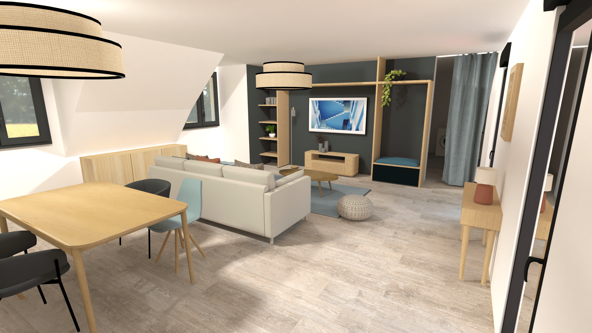 Pour cet appartement situé au dernier étage d’un ancien hôtel, mon client a souhaité de l’aide concernant l’aménagement et la décoration intérieure et extérieure. Dans une volonté de revendre son bien après la rénovation, j’ai opté pour une ambiance intemporelle et pérenne dans le temps afin que la décoration puisse plaire au plus grand nombre.